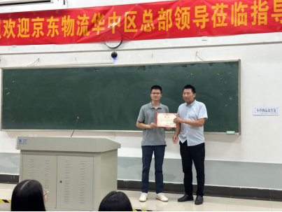 首先,湖北京邦达物流科技有限公司华中校企合作负责人陈骏飞通过视频宣传、PPT展示以及与学生面对面交流等方式,介绍了京东的发展历程、业务情况、员工成长路径,并从就业形势、行业发展、学生职业规划、“京东新锐之星”等方面深入浅出的介绍了京东特色班的培养模式、课程内容、实践计划等情况。