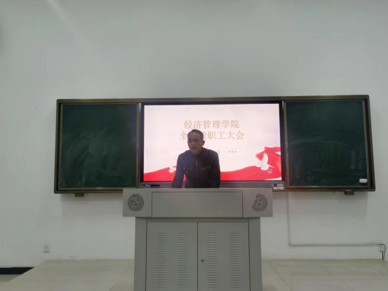 4月4日下午,经济管理学院在5117召开了学院教职工大会暨教学工作会议,学院党政领导、全体教职工参加了会议。会议由学院党总支副书记周敏主持。