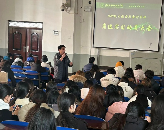 为进一步做好应届毕业生岗位实习工作,提高2021级大数据与会计专业学生的就业能力,培养学生职业技能,经济管理学院于2023年12月26日下午在1202教室召开大数据与会计专业岗位实习动员大会。会议由大数据与会计专业教研室主任曾志平主持,学院副院长谢丁峰、会计教研室全体老师及大数据与会计专业全体岗位实习学生共同参与。