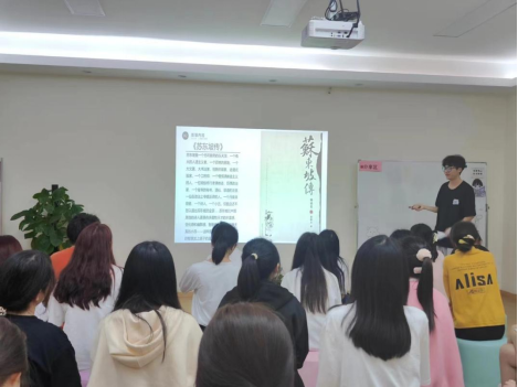 随后,李源同学推荐大家共读经典书籍《苏东坡传》。他说,苏东坡是千百年来被人景仰的大文豪,也是有宋以来文人心中的精神典范,林语堂先生的这本《苏东坡传》详细介绍了苏东坡一生,值得大家用心品阅。接着盛娜老师带领着大家进入《苏东坡传》听书环节。