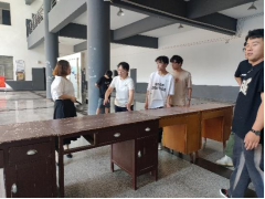图为学校党委书记刘建湘、纪委书记王波、副校长成涛、副校长侯新华检查我院迎新工作