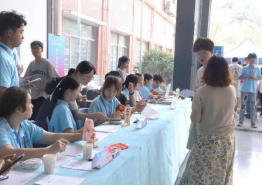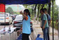 图为志愿者在报到注册、宿舍入住、行李寄存等多个环节上,为新生和家长提供了一站式的服务