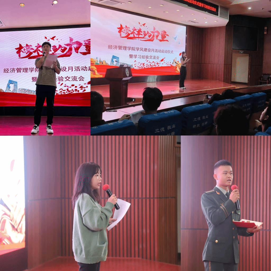 学风是学校的根本支柱,也是学生成长的肥沃土壤,班风兴则学风兴,学风兴则校风兴,校风兴则学校兴。10月24日中午,经济管理学院“学风建设月”活动启动仪式暨学习经验交流会于图书馆一楼报告厅召开。此次活动在全校范围内邀请了学习标兵、创新创业比赛优秀个人、技能竞赛获奖代表以及优秀大学生退役士兵代表,旨在鼓励广大学生勤奋学习,积极向上,保持优良的学风,促进学生思想道德素养和科学文化素养的协调发展。参加本次交流会的有学院党总支副书记周敏、辅导员奉新锋、易艾萍等。