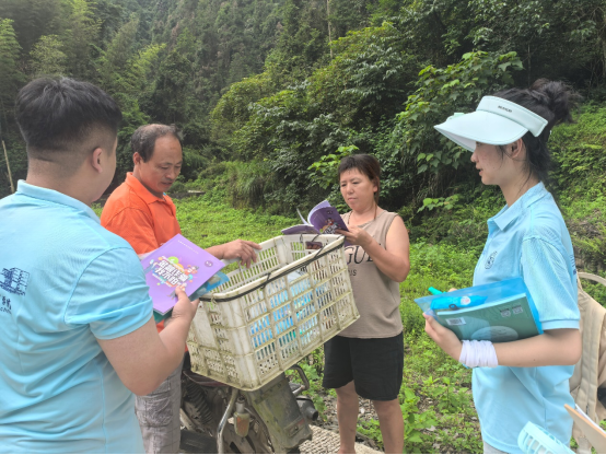 第二天我们开始走村入户发放金融防诈宣讲资料,我们把难骨头、硬骨头先啃下来,上午先去最远的村庄,遇到的村民们都很热情。然而,越往山里走,贫富差距越明显,在路上碰到步履蹒跚的爷爷奶奶,长期在山里生活,听不懂太多普通话,我们只好边说边比手势。还记得在山里和几个在干活的爷爷聊家常时,问起他们有没有享受到国家的相关资助政策时,他们连声称赞现在国家政策越来越好。我们也趁机向他们宣传了金融防诈骗政策、大学生读书的国家资助政策,虽然他们听普通话很费力,我和我的小伙伴一个比一个有耐心,有人用嘴说、有人用手比划……