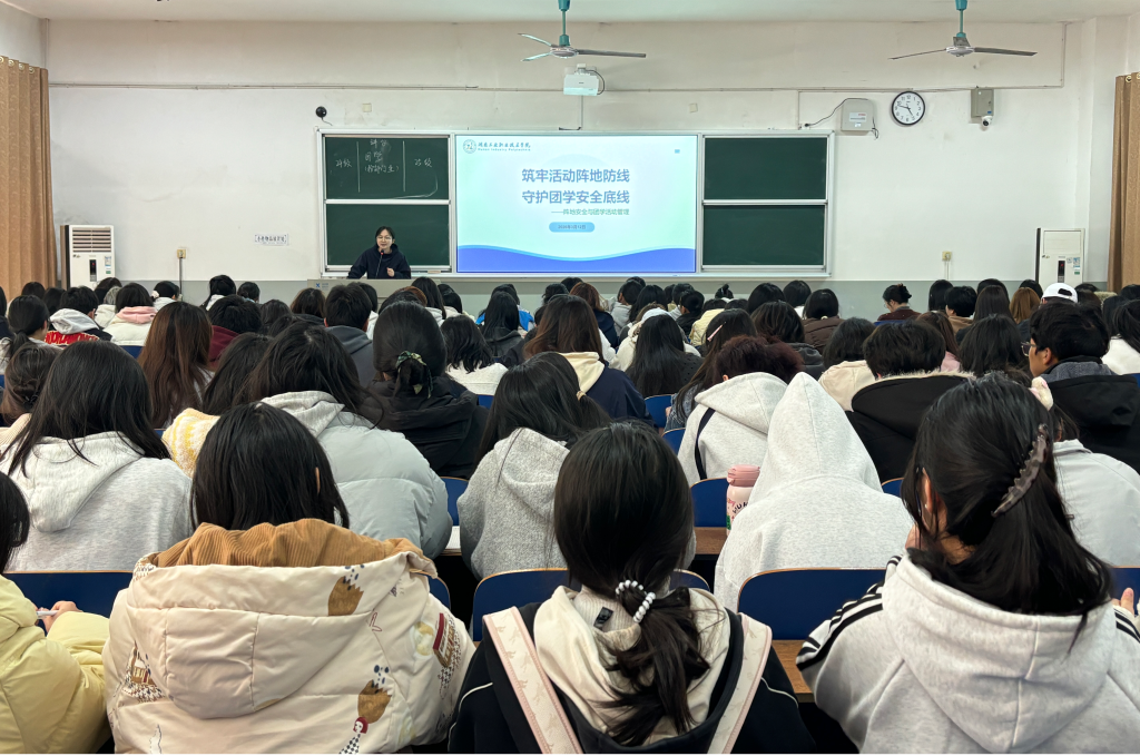 为切实保障新学期学生学习生活安全有序,筑牢校园安全防护网,3月12日中午,我院在2104教室召开新学期学生安全工作会议。各班班长、团支书、生活委员、心理委员及团总支学生会全体学生干部齐聚现场,学院党总支副书记周敏和相关辅导员参加会议并围绕核心安全议题作专题发言。