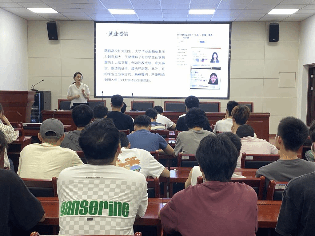 讲座现场,张铃娣围绕“什么是诚信”“在学习中讲诚信”“就业诚信”三个方面展开,对于诚信的定义张铃娣提出,“诚”是忠诚老实, “信”是讲信誉、讲信用,诚信是中华民族延绵千年的传统美德,是当代社会主义核心价值观的重要组成部分,诚信也是个人的立身之本。作为肩负民族复兴重任的新时代青年,应当在学习中讲诚信、在生活中讲诚信、在就业中讲诚信,从自己做起,从小事做起,让诚实守信在校园蔚然成风