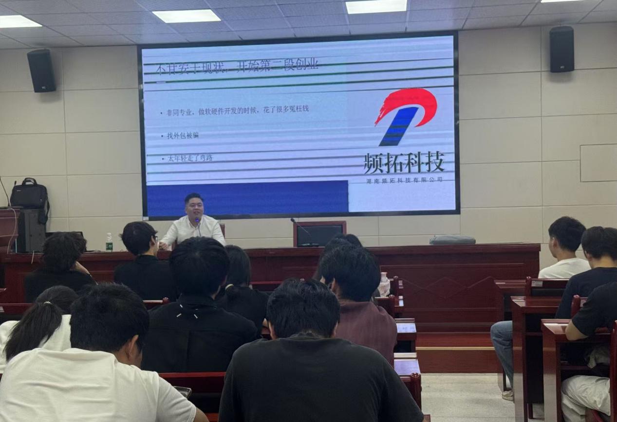 6月24日晚,我校机械工程学院8409报告厅座无虚席。湖南频拓科技有限公司董事长,机械工程学院机械制造及自动化专业2018级校友李扬重返母校,以“一位创业者的打怪升级之路”为题,为一百余名学弟学妹带来一场充满汗水与智慧的创业经历分享会。