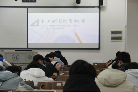 11月29日下午14:30点,机械工程学院团学联合会社团部与CAD协会联合举办的“2020手工制图比赛”初赛在8504、8506教室举行。机械工程学院宣传网络部、社团部、学习部成员担任本次监考员,机械工程学院学生参加本次竞赛。社团部郑波、赵甜担任本次大赛主持人。