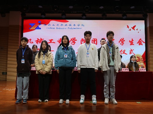 学生干部代表谭涛带领团学联合会新成员进行宣誓,同学们铿锵有力的誓言声回荡在授牌仪式现场。最后,授牌仪式在慷慨激昂的团歌中落下帷幕。