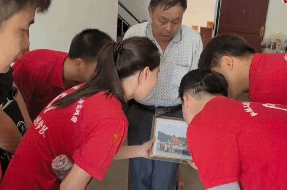 26日上午,志愿者们带着慰问品前往参战老兵家,他们饱经风霜的脸上刻满了岁月的痕迹,眼中却闪烁着坚定的光芒。每到一位老兵家里,志愿者们都充满敬畏地围坐在老人周围,认真聆听他们讲述入伍当兵时的难忘经历,从入伍初心到战场上的残酷场面,再到战友情谊和面对生死的勇敢无畏……志愿者们一边听,一边用本子和手机记录老兵们的事迹。