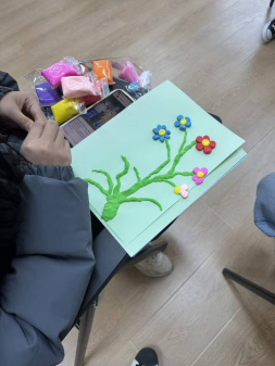 活动现场,同学们从“暖场联想”破冰,到“独立思考”内观,再到“轻量分享”交流,最后进入“创意创作”的深度表达,同学们运用彩色粘土,将心中的意象转化为具象的“植物自己”,并在卡纸上书写对未来的寄语。活动弱化对作品美观度的评价,始终聚焦于创作过程的投入与表达的真实,鼓励每个人尊重并呈现独一无二的内心图景。活动全程配以舒缓音乐,强调保密与尊重,营造出安全、包容、支持的团体氛围,让同学们能够安心打开心扉。