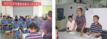 7月21日上午,机械工程系组织数控技术专业高职骨干教师国家级培训班全体成员,在我院数控中心举行了数控技术专业技术服务工作交流会,会议由机械工程系副主任李强副教授主持,机械工程系技术服务部和数控教研室教师参加了交流。 李强副主任介绍了机械工程系技术服务部的组织结构、运行制度、校企合作双赢的思路,开展技术服务和企业培训工作的措施和成效。技术服务部陈志坚老师与全体国培班学员分享了对外技术服务、产品设计与改进、外协加工、员工培训等方面的具体经验,强调了在对外加工服务中改进工装、提高加工效率、降低成本的重要性和窍门。会上数控专业老师还展示了部分自己设计和改良的刀具和夹具。