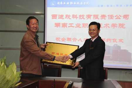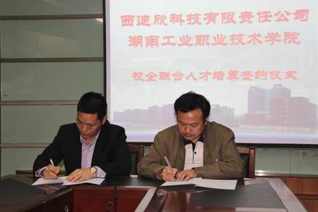 机械工程系与西迪欣科技发展股份有限公司于11号上午在学院第二会议室举行校企合作签字仪式。西迪欣科技发展股份有限公司总经理肖志雄、人力资源部部长刘敏以及我院党委副书记周立华、院校企合作办公室主任彭跃湘教授、机械工程系主任皮智谋、总支书记陈方、副主任任成高、经济管理系刘国莲副主任等出席了签字仪式,双方在非常友好的气氛中签署了签字仪式。