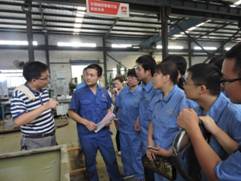 在同心实业,学员们参观了大型的锻压设备、冲压模具制造车间和车身焊接生产线。座谈会上,人力资源负责人吴主任首先说明了企业将来的发展策略,随后对工作岗位人才需求和人才发展通道进行了介绍,学员们重点对编程人员和机床操作员两个岗位职业能力要求进行了深入了解。