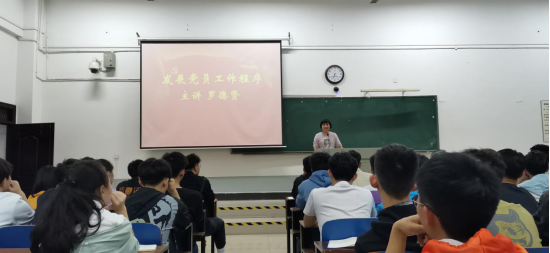 课堂上,罗德贤老师从“端正入党动机,明确入党意义”“发展党员工作的基本方针和原则”“发展党员工作程序”三个方面给全体学员上了一堂精彩的党课,并根据学校发展党员工作流程,结合我院实际情况,详细地讲解了大学生入党的整个过程。