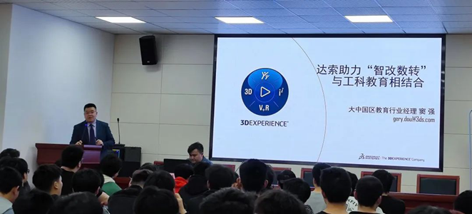 达索大中国区教育行业经理窦强先生分享了关于达索助力“智改数转”与工科教育相结合的主题相关内容,从工科教育方面阐述达索在中国工科教育方面的努力,通过视频媒体展示了达索系统近几年在中国航空、装备、海洋、医疗等行业的项目成果。从市场应用角度和产品价值的角度阐述了达索系统在多层次、跨学科、全流程的创新人才培养与终身学习的教育体系,鼓励学生们敢于挑战自我和积极提升技能,拓宽自己可选择的就业渠道。
