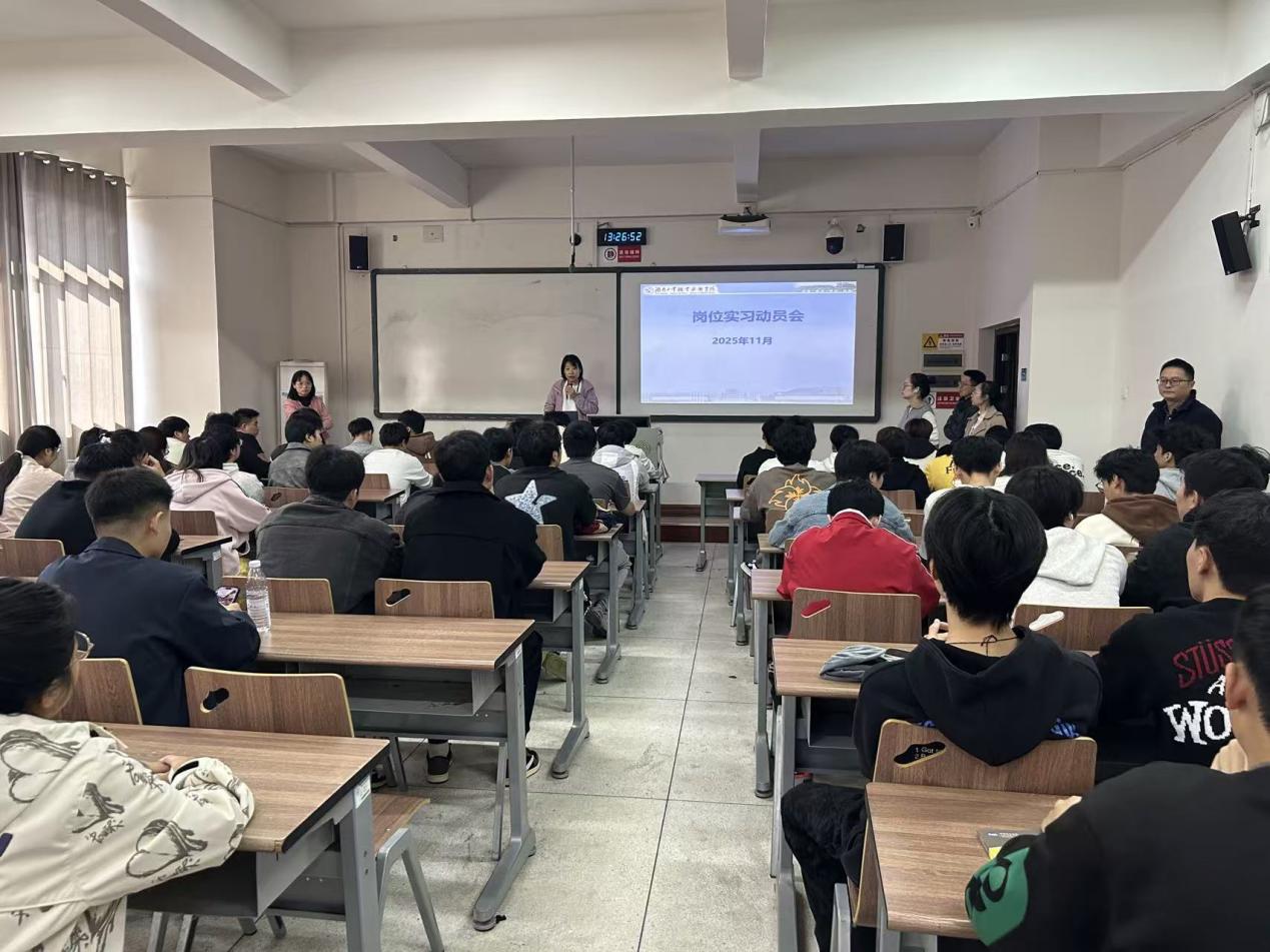 2025年11月21日,根据教育部等八部门关于印发《职业学校学生实习管理规定》的通知(教职成[2021]4号)、湖南省教育厅关于印发《湖南省职业学校学生实习管理实施细则》的通知(湘教发〔2018〕31号)和《电子pg游戏平台下载实习管理办法》等文件相关要求,工业产品质量检测技术专业全体岗位实习指导老师在8-503召开了2023级工业产品质量检测技术专业岗位实习动员会。会议旨在统一思想、明确任务、强化管理,确保学生岗位实习工作安全、有序、高效开展,专业全体实习指导教师和2023级全体学生参加了会议。