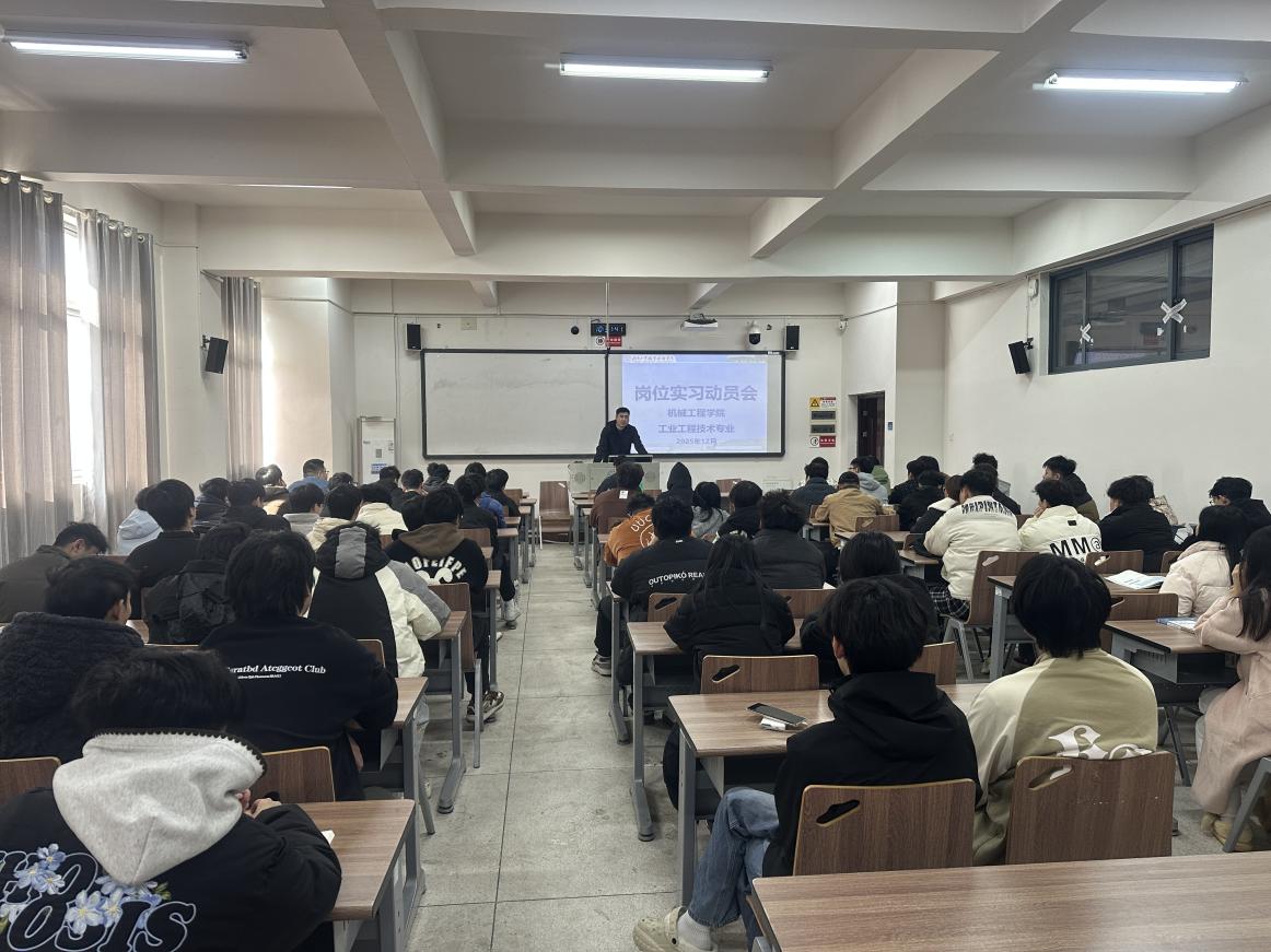 为扎实推进2023级毕业生岗位实习工作,引导学生明确实习目标、确保实习质量与安全,工业工程技术专业于2025年12月3日上午,在8-507成功举办了岗位实习动员大会。本次动员会由工业工程技术教研室主任葛能鹏主讲,岗位实习指导老师以及全体即将参加岗位实习的2023级工业工程技术专业的毕业生参加了会议。
