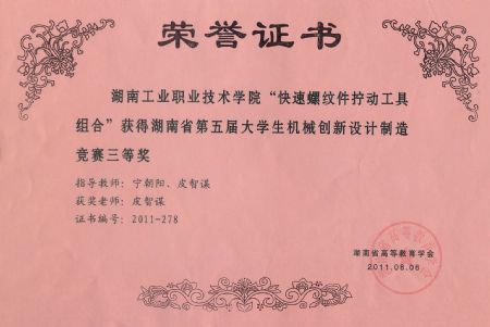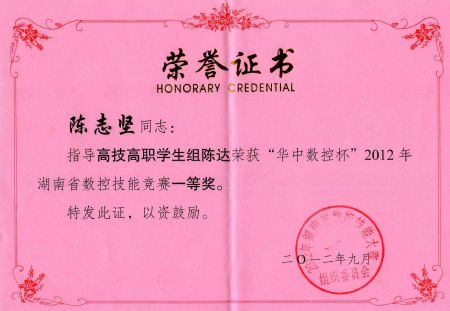 | 陈志坚老师获2012年湖南数控技能大赛指导奖 | |