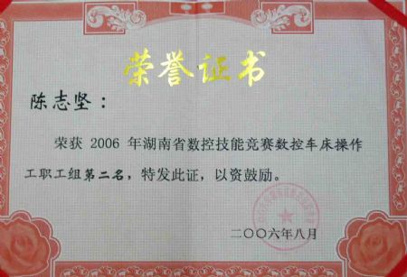 陈志坚老师获2006年湖南省数控技能大赛 第二名 | |