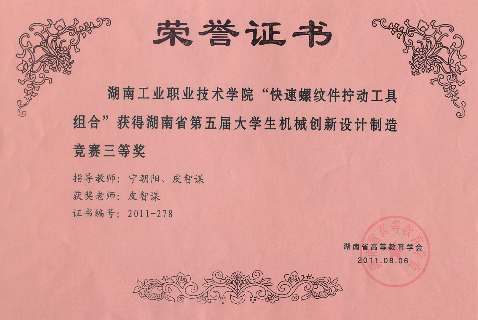 皮智谋老师获第五届湖南省大学生创新设计大赛指导奖 | |