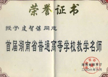 皮智谋老师被授予湖南省普通高等学校 教学名师荣誉称号 | |