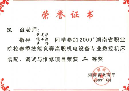陈志坚老师获2009年湖南数控技能大赛 指导奖 | |