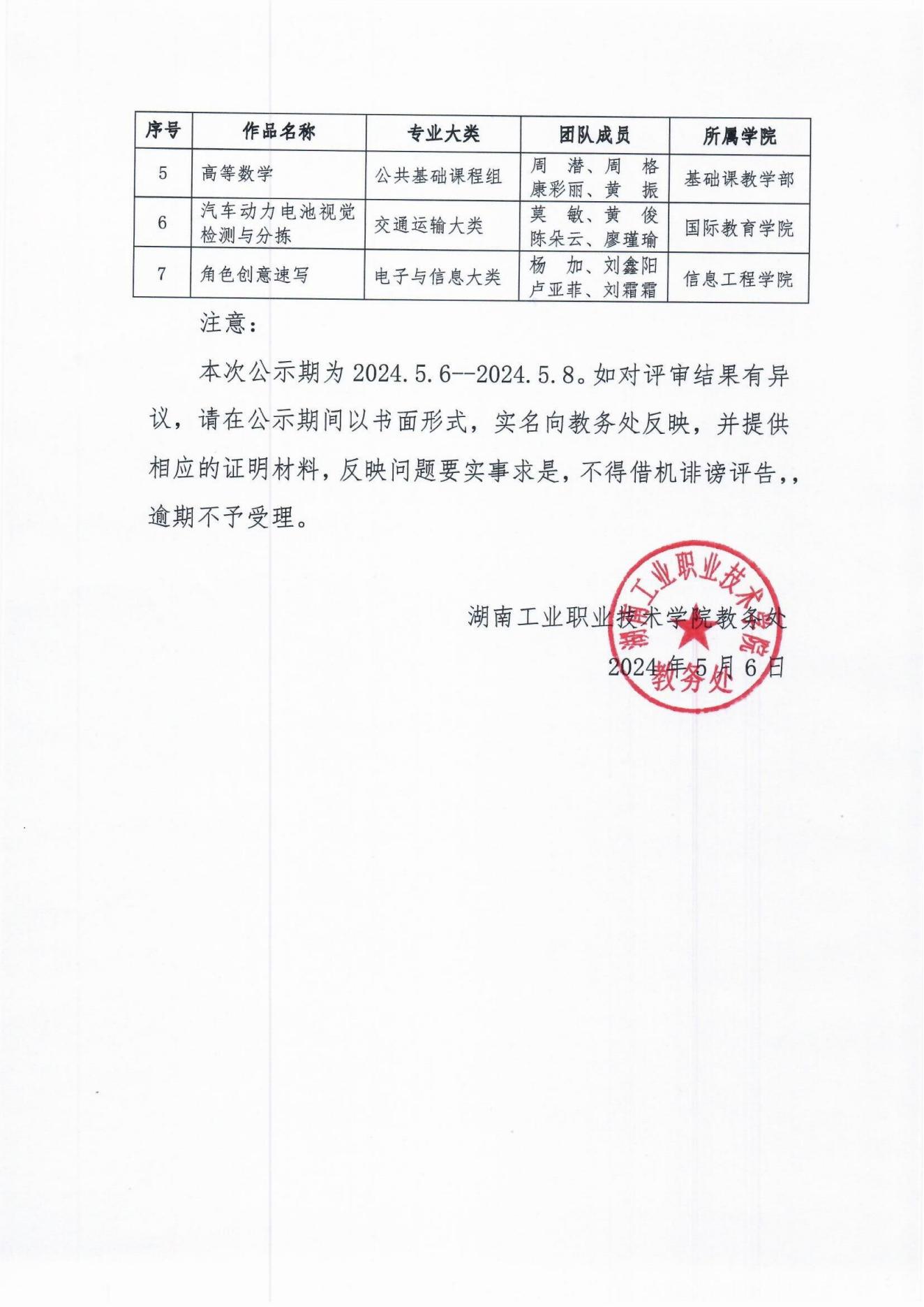 关于拟推荐参加 2024 年湖南省职业院校教师职业能力竞赛教学能力比赛的校内遴选结果公示