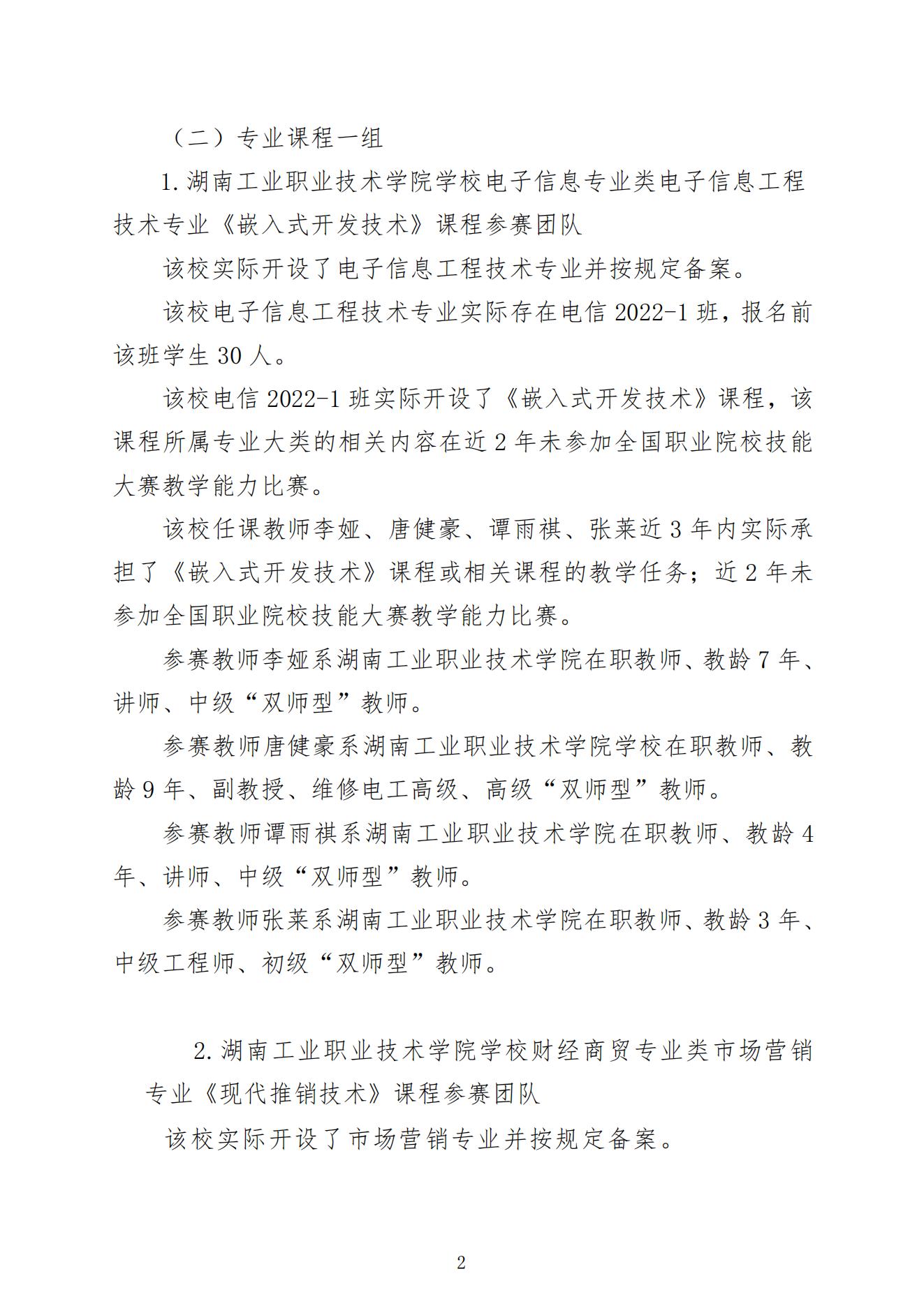 2024年“楚怡杯”湖南省职业院校技能竞赛教学能力比赛电子pg游戏平台下载参赛团队信息公示