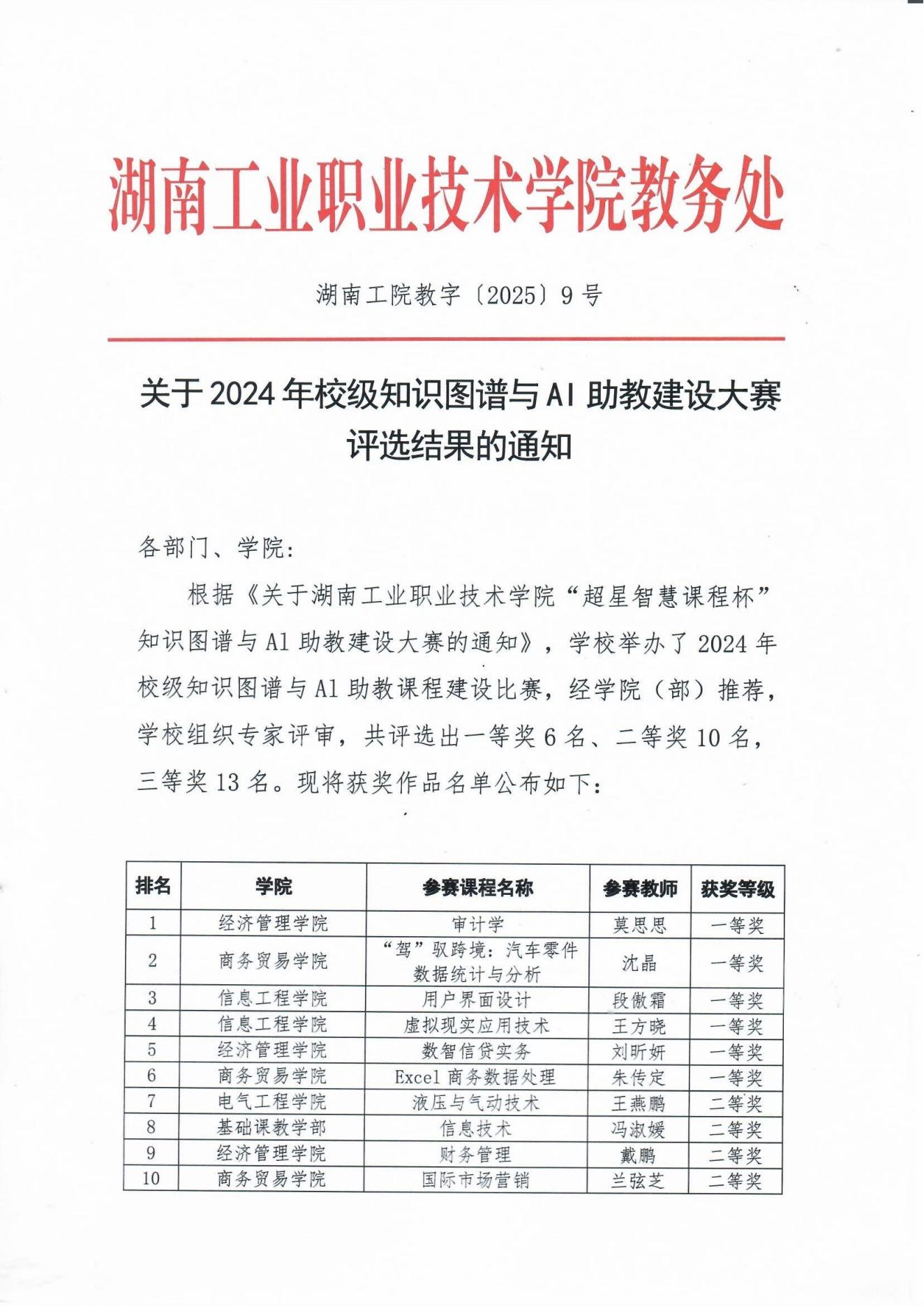 关于2024年校级知识图谱与AI助教建设大赛评选结果的通知