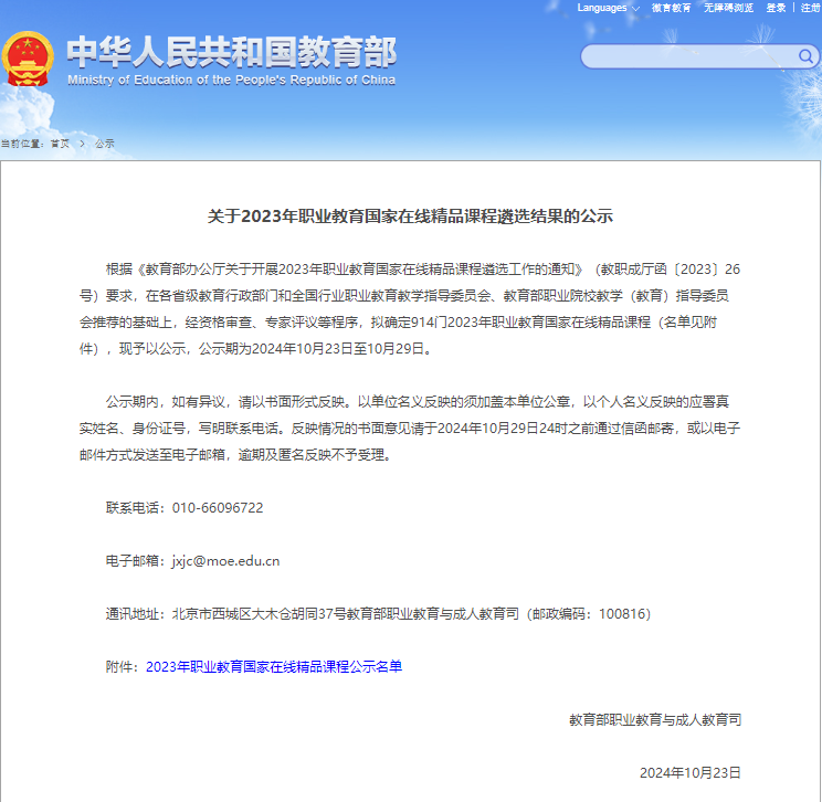 日前,教育部公示2023年职业教育国家在线精品课程遴选结果,我校《公差配合与测量技术》等5门课程被认定为2023年职业教育国家在线精品课程,入选数量位居湖南省同类院校首列。这是我校课程建设的新突破,为学校远大发展战略目标的实现奠定了坚实基础。