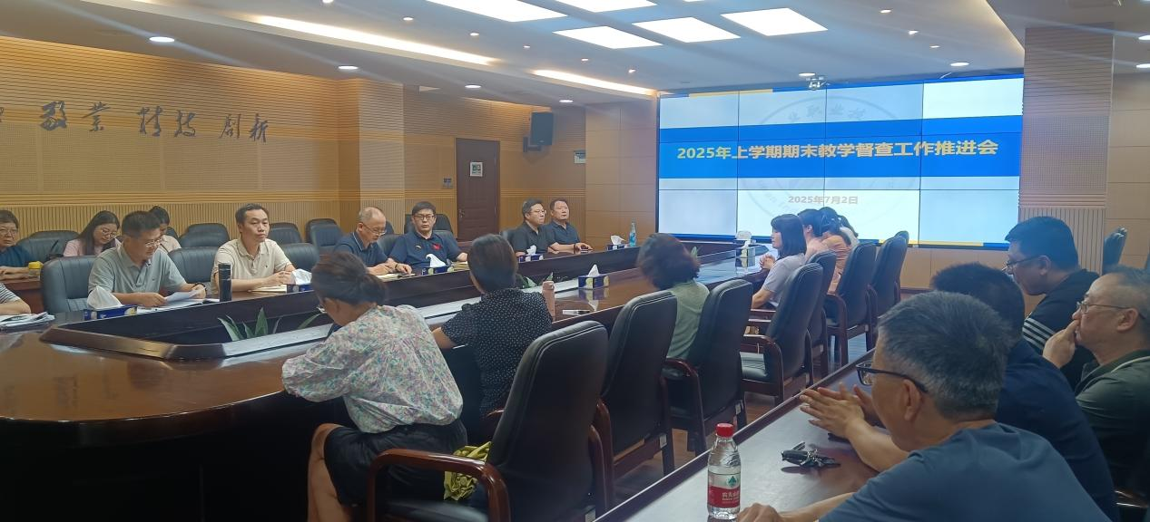 2025年7月2日下午,教务处组织期末教学督查工作推进会。会后,由李强副校长带队,教务处负责人及校督导团成员组成5个督查组,对全校10个教学单位开展了期末教学专项督查。