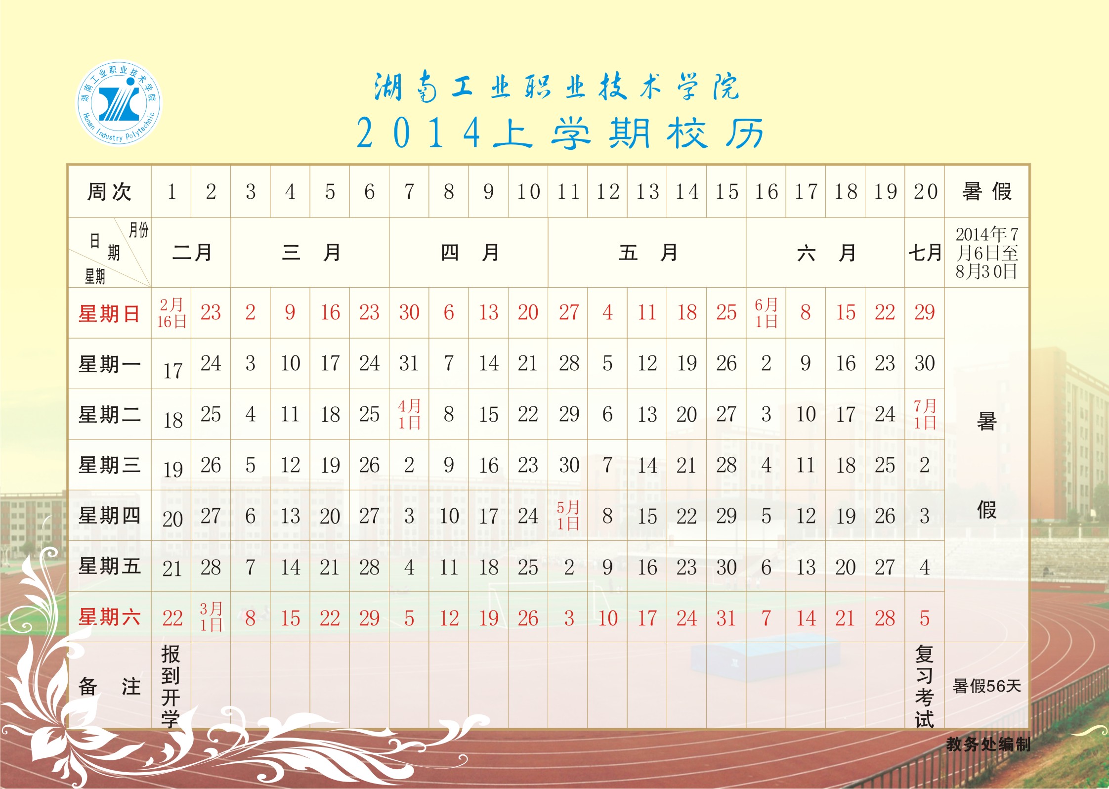 2014年上学期校历