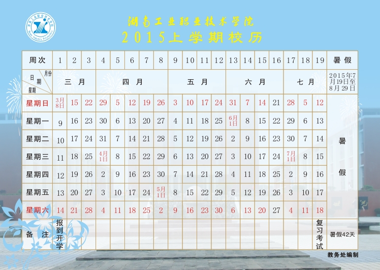 2015年上学期校历