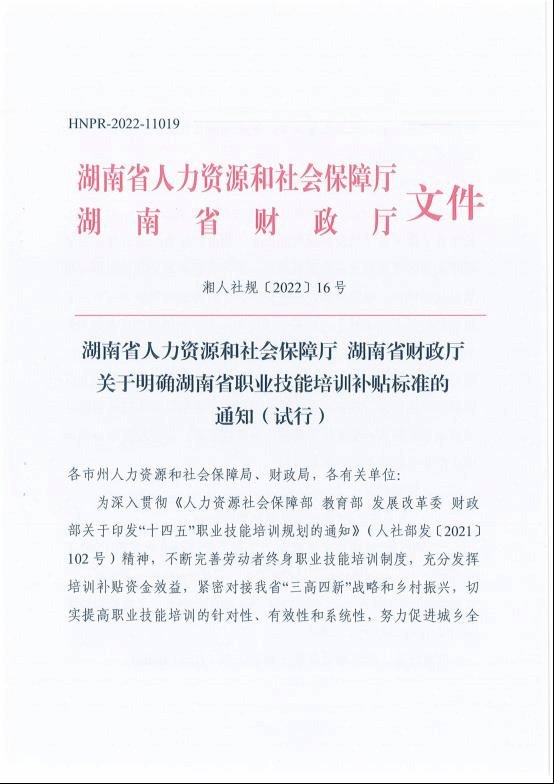 现将《湖南省人力资源和社会保障厅、湖南省财政厅关于明确湖南省职业技能培训补贴标准的通知(实行)》进行转发,具体内容见附件。
