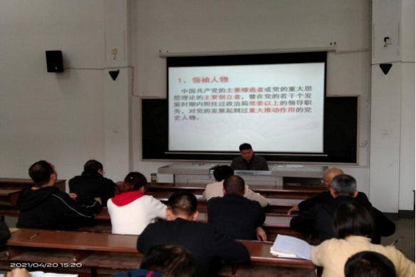 实训继教党总支为扎实推进党史学习教育工作,4月20日下午,在6308多媒体教室,由实训中心党支部书记胡彦辉同志讲《学党史、悟思想、跟党走》党课,实训中心党支部和继续教育学院党支部全体党员参加。