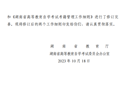 关于修订印发《湖南省高等教育自学考试考务工作细则》和《湖南省高等教育自学考试考籍管理工作细则》的通知.pdf