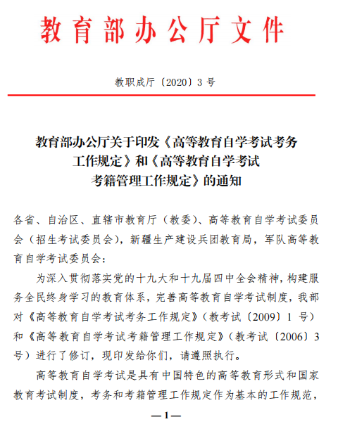 教育部办公厅关于印发《高等教育自学考试考务工作规定》和《高等教育自学考试考籍管理工作规定》的通知.pdf