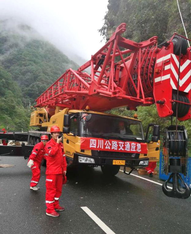 灾情发生后,四川省交通运输厅立即安排抢通抢险,第一时间派出由厅领导带队、公路设计院桥梁技术专家参加的工作组赶往现场,指导高速公路和地方开展应急处置,并立即调配四川省公路交通应急装备物资储备中心的两台三一SAC1300T全地面汽车起重机、无人驾驶步履式挖掘机等救援设备前往支援。
