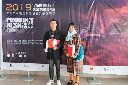 本网讯 12月4日至6日,2019年全国机械行业职业教育技能大赛工业产品造型创意设计及表现赛项在常州举行。经过激烈角逐,湖南工院工业设计与艺术学院工业设计专业2017级学生张晓柯、段池两名同学脱颖而出,获得团体一等奖,黄慧、江果燕获得“优秀指导老师”称号。
