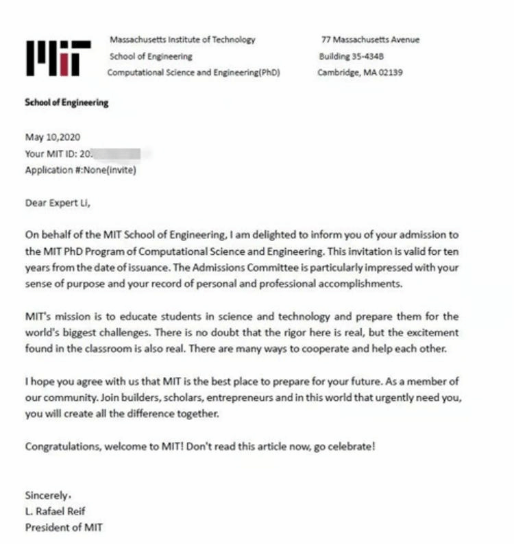 李家兴拿到美国麻省理工学院的博士录取offer