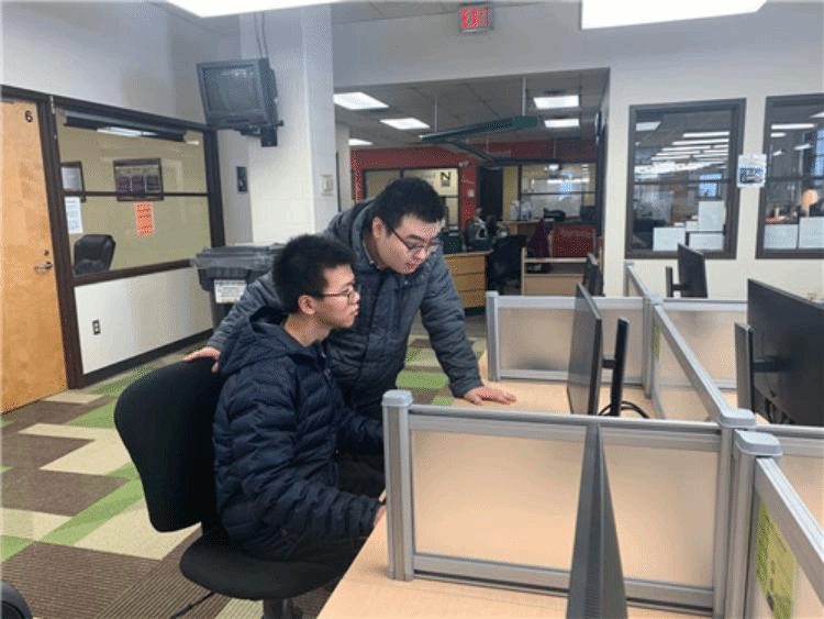 李家兴(前排操作电脑)在加拿大北方应用理工学院学习