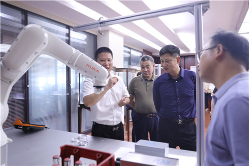 7月2日上午,向罗生一行首先调研了楚天科技股份有限公司,参观了该公司智能制造车间、模具车间、冻后智能包车间、党建长廊等地,并看望了在该公司实践锻炼的两名青年教师。在校企交流座谈会上,公司副总裁周婧颖介绍了公司发展概况,着重介绍了该公司目前在订单班组建、学生实习实训、技术研发等方面开展的校企合作工作情况;向罗生介绍了学校发展历程、办学定位、办学成绩及学校“工字号”人才培养特色等;邱丽芳从高校教师企业实践、企业兼职教师聘请、校本教材开发等方面,介绍了学校的合作需求。与会双方围绕合作事宜展开交流。