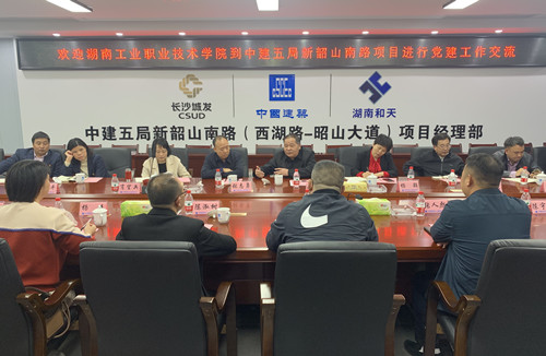 在随后举行的党建工作交流会上,刘建湘对中建五局土木工程有限公司新韶山南路项目部的党建文化阵地建设表示赞赏,并介绍了学校办学历史、发展历程、基本概况和近年发展成果,着重介绍了电子pg游戏平台下载“专业建在产业链上,支部建在实训车间”的党建工作特色。他期待校企通过建立“党建联盟机制”加强深层次交流与合作,以订单培养、企业家进校园、能工巧匠兼职辅导员、搭建文体活动交流平台等多种形式共同育人,培养德智体美劳全面发展的高技术技能型人才,共同助力“三高四新”战略实施,奋力建设现代化新湖南。