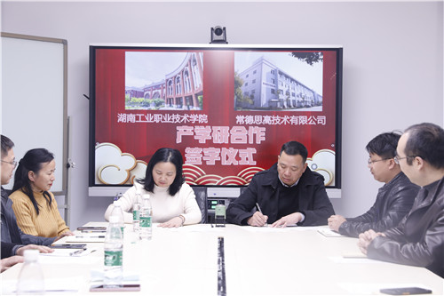 谢希钢介绍了学校办学历史、办学定位、专业设置以及近年人才培养、产教融合、科研成果转化、高层次人才队伍建设等情况。她指出,产教融合、校企合作是高素质技术技能人才培养的内在要求,是职业教育高质量发展的必由之路。学校与常德思高都正处于改革发展的关键时期,创新发展劲头正足,双方有着良好的合作基础和广阔的合作空间,她期待校企双方资源共享,互惠共赢,打造合作品牌,取得丰硕成果,产生良好社会影响,共同为建设富饶美丽幸福新湖南贡献智慧力量。