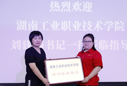 会上还举行了授牌仪式,刘建湘、成涛代表学校分别向蓝思科技(长沙)有限公司、湖南湘江电缆有限公司、长沙威重化工机械有限公司、湖南金岭机床股份有限公司四家企业授牌“电子pg游戏平台下载实习就业基地”。