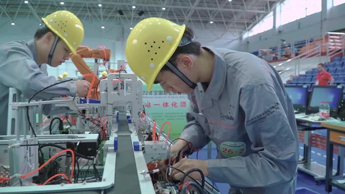 本届大赛共有来自全国各地的55支队伍分两批于26日、27日两天进行比拼。赛场高手如云,比赛精彩激烈。参赛师生认真准备、刻苦训练,按工作任务书指定要求,进行机电一体化设备机械安装、电气安装、设备单元编程、设备故障检修、设备系统编程调试、职业素养与安全意识六个模块的考核。选手们稳定发挥,取得了团体一等奖第一名的好成绩。