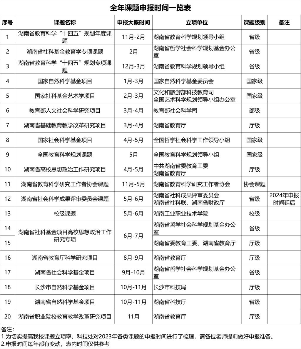 全年课题申报时间一览表