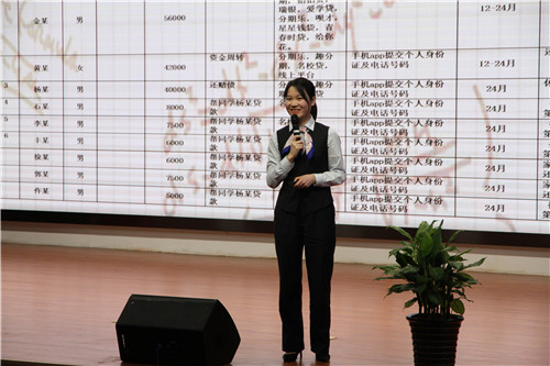 据悉,学校积极组织开展“金融知识进校园”专题讲座,旨在普及金融知识,提升学生理财能力,加强对非法“校园贷”的防范意识,营造和谐的校园法制安全氛围,相关活动仍将继续开展。