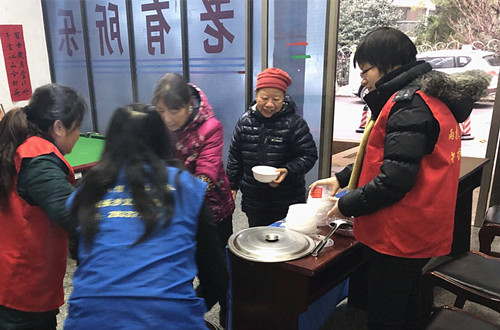 1月24日是农历十二月初八,俗称腊八节。我校离退休工作处联合牛婆塘社区、斑马塘社区、康怡养老开展了暖心赠粥送福活动,活动在靳江明珠小区和雨花小区同时进行,赠粥的对象是我校离退休教职工和小区业主。